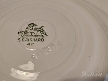 Set composto da 6 piatti in Porcellana SC. Richard diametro 20 cm. circa. Decoro e bordo dorato.