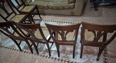 vendo set di 6 sedie arte povera tinto noce con seduta in paglia di vienna, in buono stato. misure 46x45x92. Vendo 50 euro l'una o 90 la coppia (tutte e 6 in blocco a 250 eu) Viste e piaciute - zona Ostia lido
