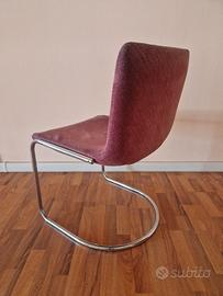 Set di 6 sedie di Giovanni Offredi per Saporiti Italia, cromatura perfetta, tessuto velluto bordeaux operato, stile vintage. Larghezza 55cm, profondità 50cm, altezza seduta 49cm, altezza schienale 92cm.