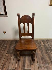 Vendo set di 6 sedie in legno massello color noce, stile rustico/tradizionale. Struttura robusta e stabile, con schienale alto sagomato e gambe tornite che le danno un tocco elegante.