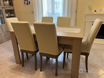 Set di 6 sedie modello Nancy, perfette per arredare la tua sala da pranzo o cucina. - Sedie con struttura in legno. - Rivestimento in color elephant - Design moderno ed elegante Tutte le sedie sono in ottimo stato, usate sempre con copri sedie. Regalo copri sedie nei seguenti colori: - Panna - Blu - Bordeaux - Grigio con fantasia bianca Il prezzo è trattabile. Solo ritiro a mano, non spedisco.