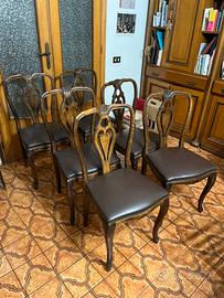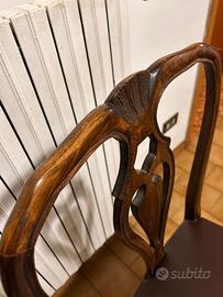 Vendo 6 sedie d’epoca Chippendale. Le sedie sono in legno di ciliegio, con borchie in ottone e seduta in palle. Ottimo Stato.