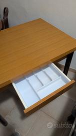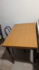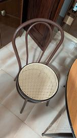 Set composto da 6 sedie stile Thonet, con struttura in metallo verniciato e seduta in polipropilene, robuste e stabili. 2 tavoli vintage dal design essenziale, stabili e robusti, ideali per cucina, sala da pranzo o ambiente bistrot: - 1 tavolo tondo - 1 tavolo rettangolare estendibile con cassetto porta posate. (con normali segni di usura)