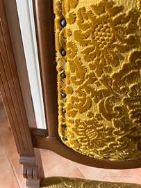 Set 6 Sedie Vintage In Legno e Velluto Giallo Oro.