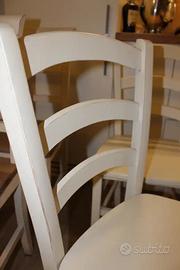 Vendo set di 6 sedie firmate Westwing, perfette per un arredamento in stile country, provenzale o shabby chic. Le sedie sono realizzate in legno e presentano una finitura bianca con un elegante effetto vissuto (decapé).