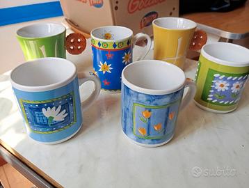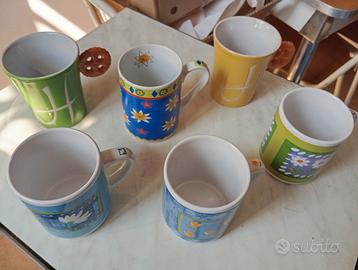 Set 6 tazze MUG in ceramica decorata adatte per colazione