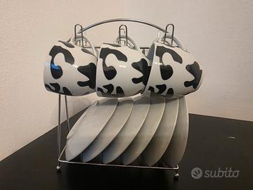 Set 6 Tazzine Caffè Porcellana Mucca con Piattino