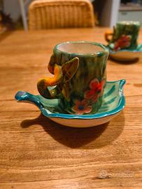 Set 6 tazzine con piattino e zuccheriera in ceramica di Maiori fatte a mano, pezzi unici