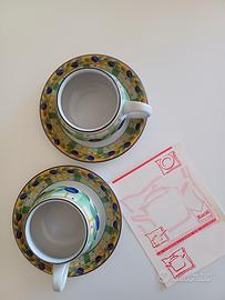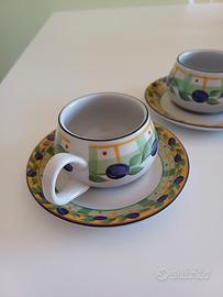 Set 6 Tazzine+Piattini in porcellana da fuoco con decorazione rami di ulivo,gialle e verdi.