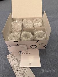 Set di 6 tazzine Ichendorf Milano “Macchia”. Tazzine di design in vetro perfette per gli amanti del caffè che non prediligono la ceramica. Le tazzine non sono mai state utilizzate, la confezione è integra e perfetta.