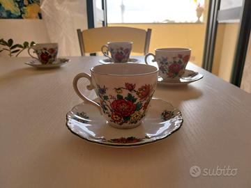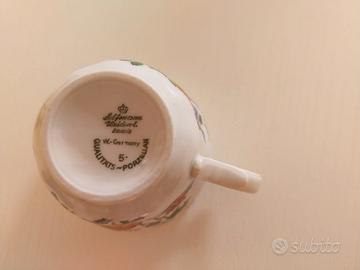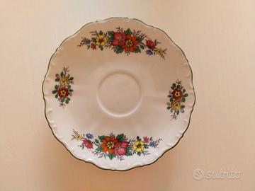 Elegante servizio composto da 6 tazzine con piattino in finissima porcellana Bavaria, più 6 piattini dolce con diametro 15cm decorazione floreale e bordo scuro, tipico delle porcellane d'epoca, originale anni 50-60. Marchio sotto la base "Seltmann Weiden" porcellana più nota della Germania W-Germany numero 5.