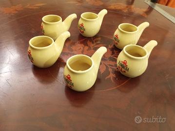 Set 6 bicchieri tazzine pipa ceramica Kambusa Bonomelli. Dimensioni: Altezza: 5 cm ca. Diametro: 4 cm ca. Lunghezza: 9,5 cm ca.