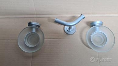 Set 7 accessori da bagno cromo cromati e vetro satinato arredo vintage ,condizioni nuovo ne sono rimast 3 cromati,