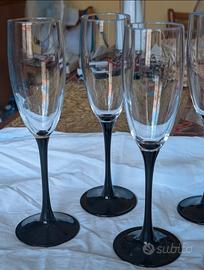 Servizio di 7 flute della famosa marca Luminarc! Flute con stelo nero vintage, incisioni del marchio sul fondo dei bicchieri come da foto!
