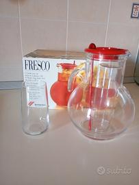 FRESCO. set caraffa con tubo portaghiaccio da 1,8 litri, più 6 bicchieri da bibita 35 cl in vetro soffiato. Nuovo in confezione.