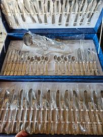 set molto elegante di 75 posate ancora incartate e mai toccate o usate. Linea acciaio e oro 24Kt.