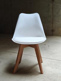 Vendo set di 8 sedie dal design moderno ed elegante, seduta ergonomica in plastica bianca e gambe in legno naturale. Struttura solida e stabile, ideali per sala da pranzo, cucina, studio o locali.