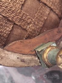 Struttura in legno intagliato e dorato con raffinata laccatura verde e dettagli decorativi scolpiti.