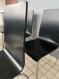Vendo set da 8 sedie dal design moderno, struttura in metallo grigio e seduta/schienale in legno curvato nero opaco.