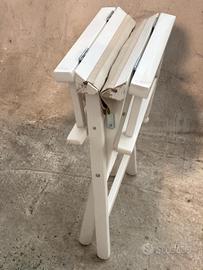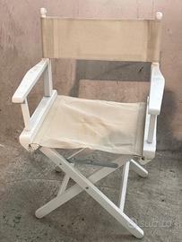 Set di otto sedie da regista pieghevoli, design vintage anni '70/'80, realizzate in legno laccato bianco e tela resistente beige. Struttura robusta e pratica, ideali per interni o esterni, completamente richiudibili per minimo ingombro. Misure: L 55 x P 50 x H 85 cm ciascuna. prezzo 20 euro cad