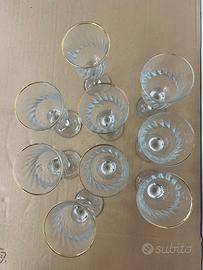 Set 9 calici in cristallo con bordo oro - vintage