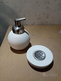 Vendo in perfette condizioni set accessori bagno compreso di : dispenser sapone, porta spazzolini, scopino e porta saponetta. Il prezzo è da intendere per tutto il set. Da valutare eventualmente la vendita singola.