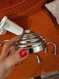 Set accessori bagno cromati, in ottime condizioni. Solo un difetto evidenziato nella foto.