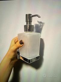 • Dispenser sapone in vetro satinato con supporto cromato