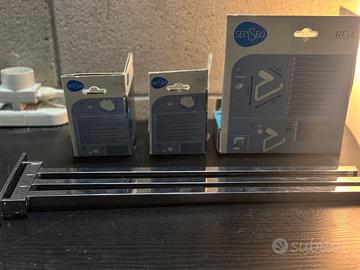 Set di accessori bagno della serie "Sensea Qaddro" in cromo lucido mai montati ancora nella confezione originale.