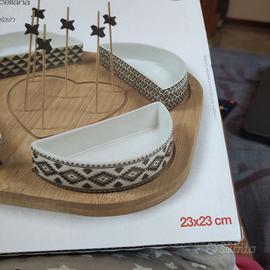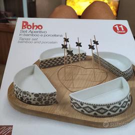Set aperitivi Boho in bamboo e porcellana. Composto da 11 pezzi. Nuovo ancora confezionato.