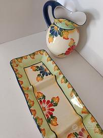 Brocca e porta vivande diviso in tre scomparti dipinto a mano