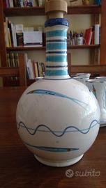 Set marchiato "Ceramiche Solimene" composto da vassoio/patto (diametro 25cm) + 6 bicchierini e bottiglia con tappo dosatore per aperitivo o digestivo fantasia mare.