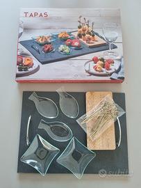 Set aperitivo con vassoio in pietra nera e ciottoline in vetro come da foto, mai usato.
