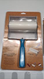 Set applicatore universale con rullo in spugna + rullo decorativo Fleur, nuovo. Adatto per decoro a tinta piena o, se abbinato al rullo decorativo in gomma, permette di realizzare effetti decorativi continui su qualunque tipo di supporto.