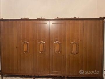Set di arredamento per camera da letto matrimoniale con lo stesso motivo in legno massello, in ottimi condizioni. Mobili in vendita per casa ormai disabitata.