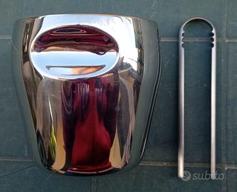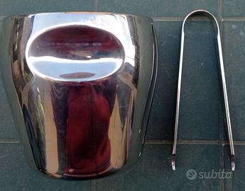 1)ALESSI RINFRESCATORE BOTTIGLIE Rinfrescatore ALESSI per bottiglie – Serie Mercurio - Disegno di Carlo Alessi Modello: Vintage, anni 50/80 Design: Bordo decorativo a corda Materiale: acciaio inox lucido 18/10 Dimensioni: Altezza cm 19,5 – Diametro superiore cm 20,5 – Diametro inferiore cm 16,5 Peso: g 1207 Materiale usato ed in buone condizioni. Presenti alcuni graffietti poco visibili dovuti all’uso Non è disponibile la scatola originale 2)ALESSI SHAKER Shaker (agitatore per cocktail) ALFRA/ALESSI – Serie Mercurio - Disegno di Carlo Alessi Modello: Vintage, anni 40/50 – NON PIU’ IN PRODUZIONE Design: Bordo e tappo decorativo a corda Materiale: acciaio inox lucido 18/10, noto per durevolezza e lucentezza Dimensioni: Altezza cm 18,5 – Diametro superiore cm 8 – Diametro inferiore cm 6,5 Peso: g 416 Materiale usato ed in buone condizioni. Presenti alcuni graffietti poco visibili dovuti all’uso Non è disponibile la scatola originale 3)ALESSI SECCHIELLO GHIACCIO + ALESSI PINZA GHIACCIO Secchiello portaghiaccio ALFRA/ALESSI completo di pinza marca Alessi Modello: Vintage, serie 871 progettato dai designer Luigi Massoni e Carlo Mazzeri negli anni 50/60 Materiale secchiello e pinza: acciaio inox lucido 18/10, noto per durevolezza e lucentezza Dimensioni: Altezza cm 12 – Diametro superiore cm 12 – Diametro inferiore cm 9,5 Peso: g 455 Materiale usato in più che buone condizioni. Non è disponibile la scatola originale 4)ALESSI SECCHIELLO GHIACCIO + PINZA GHIACCIO CINI € NILS Secchiello portaghiaccio ALESSI completo di pinza marca Cini € Nils Modello: Vintage, serie 871 progettato dai designer Luigi Massoni e Carlo Mazzeri negli anni 50/60 Materiale secchiello: acciaio inox lucido 18/10, noto per durevolezza e lucentezza Materiale pinza: acciaio inox satinato 18/10 Dimensioni: Altezza cm 12 – Diametro superiore cm 12 – Diametro inferiore cm 9,5 Peso: g 480 Materiale usato in più che buone condizioni. Non è disponibile la scatola originale Vendo il set completo € 200