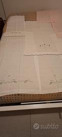 Set composto da tre coppie di asciugamani in lino, ricamati a mano, lavati ma mai utilizzati