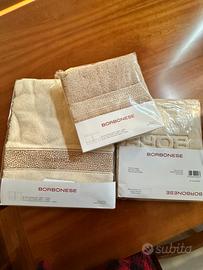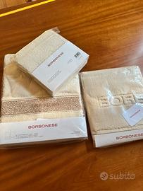 Raffinato set bagno firmato Borbonese, realizzato in 100% cotone, sinonimo di qualità e morbidezza.