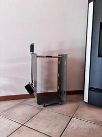 Bellissimo set per caminetto/stufa in ottime condizioni. Design moderno e molto solido. Provisto di ruote per movimentarlo. Dimensioni: ingombro totale cm 73 X 42 NO perdi tempo!