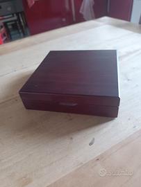 set di 6 pezzi cavatappi, 2 termometri, 2 anti gocce per bottiglia, tappo in acciaio e legno, scatola in palissandro. Mai utilizzato