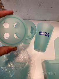 Accessori bagno di Uthentics, made in Germany. 3 contenitori gancio che possono essere uniti tra loro, 3 contenitori per spazzolini etc ( con sgoccialatoio) + 1 porta spazzolini da appoggio. Artucoli nuovi. Non si tratta della classica plastica, ma di materiale plastico resistente e di design. Disponibili pure in altri colori. Se interessato a meno pezzi o altro colore scrivimi.