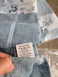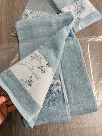 Set asciugamani da bagno Gattinoni linea spugna Prestige variante azzurro in cotone 100% composto da 1 pezzo viso + 2 pezzi ospite, tutti i dettagli del modello sono visibili in foto, articoli nuovi mai utilizzati, per ulteriori informazioni non esitate a contattarmi in chat.