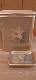 meraviglioso set bagno composto da 4 pezzi, mai usato, ceramica bellissima e pesante, di ottima qualità