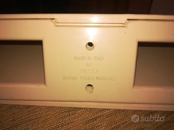 set da bagno Designer Makio Hasuike per Gedy anni 70 composto da specchio a 4 luci + mensola + due colonnine portaoggetti di cui una con anta a specchio + porta spazzolino da denti 4 posti a baionetta e con bicchiere
