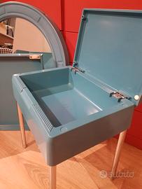 Set design anni '70 (acquistato il 4 settembre del 1975) Carrara & Matta turchese,composto da pensile Mod. Frejus, sgabello contenitore Mod. Elba e specchio Mod. Europa diametro 66,5. Posso mandare ulteriori immagini se interessati, il prezzo è trattabile.