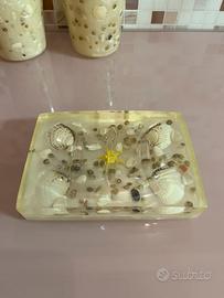 Set completo da bagno, nuovo, con portasapone, porta spazzolini e dispenser sapone. Ottima qualità.