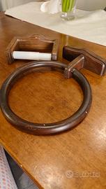 set bagno in legno, porta carta igienica e porta asciugamano da montare con semplici viti al muro.