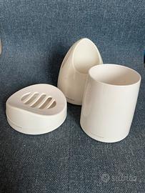 Set bagno Koh-I-Noor bianco 3 pezzi: portaspazzolini, bicchiere e portasapone. Ottime condizioni, usato poco