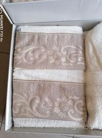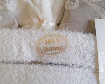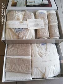 Comprende 2 accappatoi lui/lei e set di asciugamani piccoli e grandi coordinati. 100% cotone