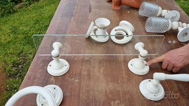 Set bagno vintage completo mensole porta asciugamani luci applique e lampada specchio porta bicchieri